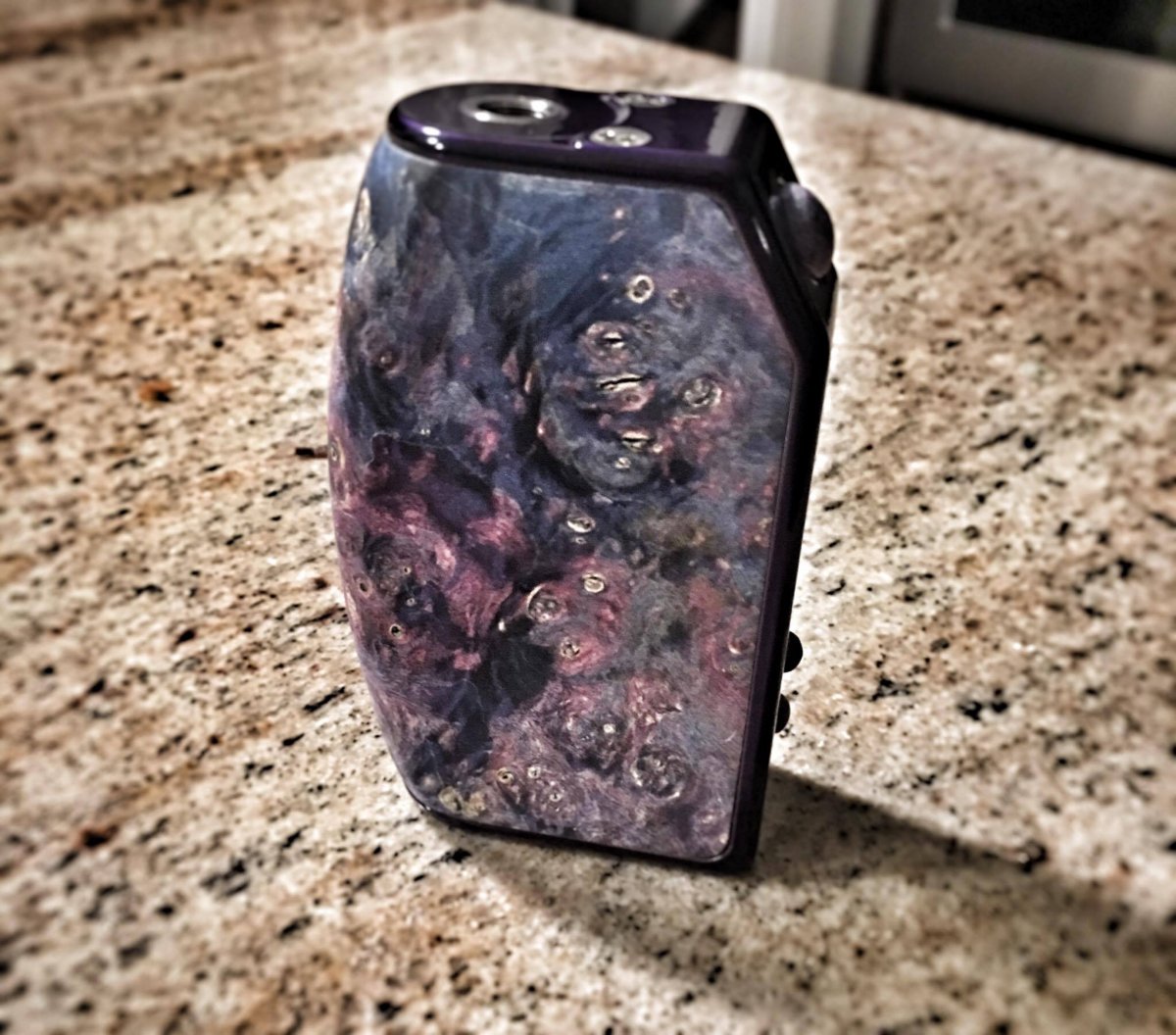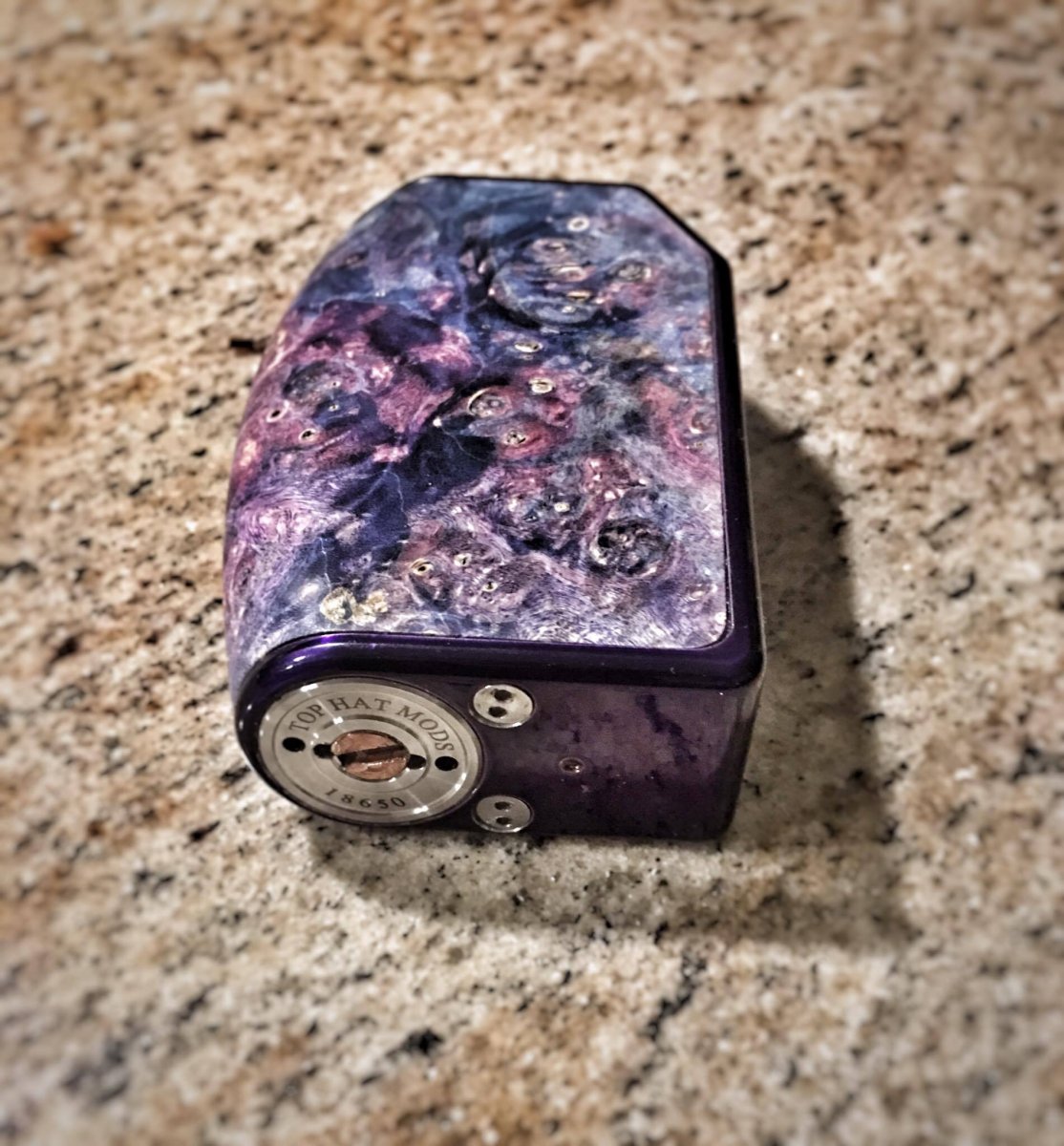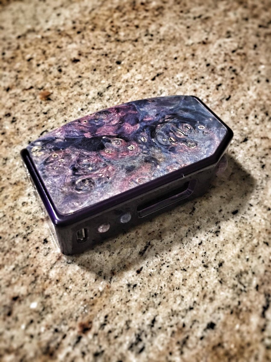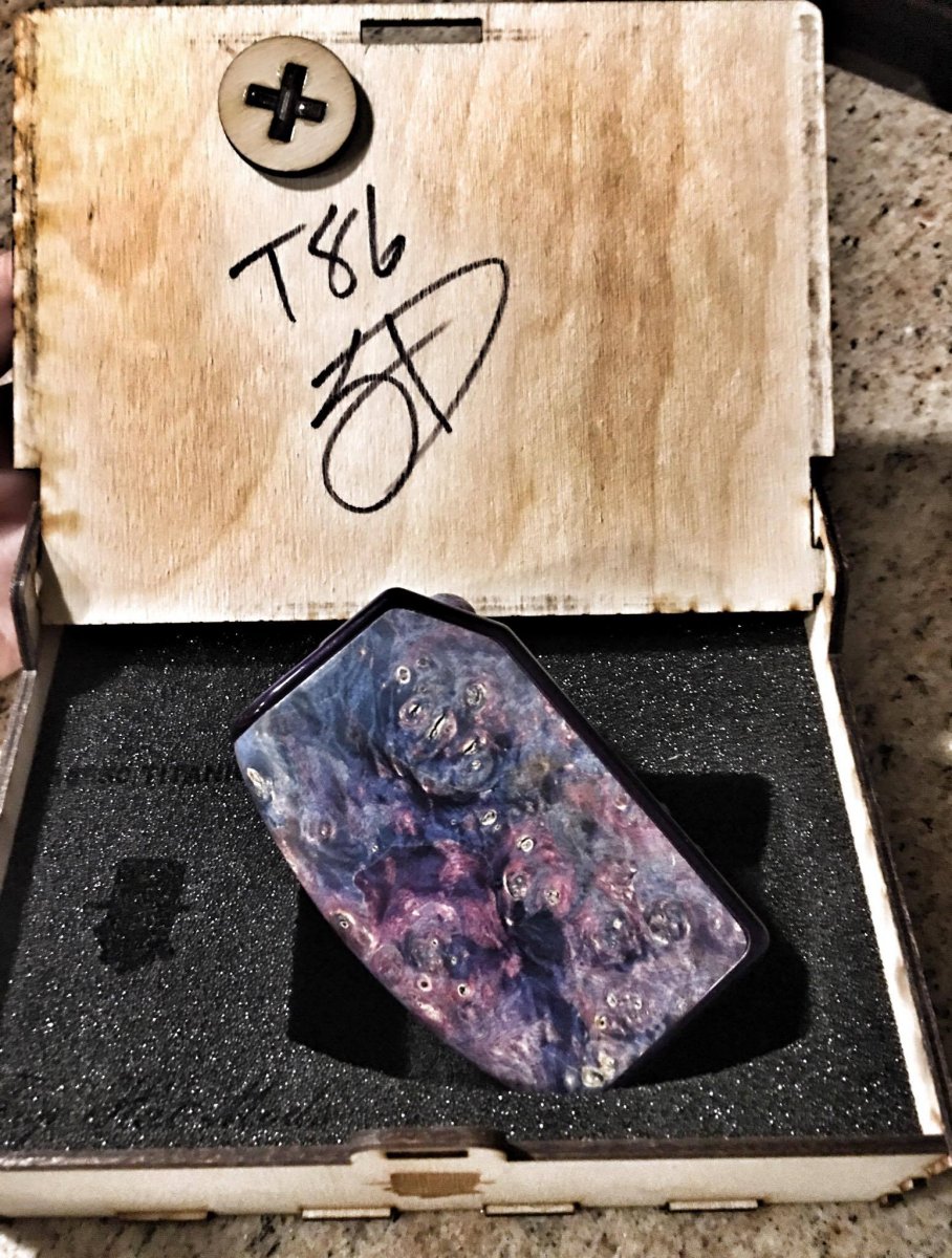 I made this mod for A Billion Lives to help promote awareness for the film which I endorse to the fullest. I have had many talks with Aaron and cannot thank him enough for what he has done for us! This Top Hat is an 18650 series on a Top Hat V2 Titanium frame with an all stabilized wood body, matching fire and selection buttons. It utilizes the Yihi SX350J-V2 board.
