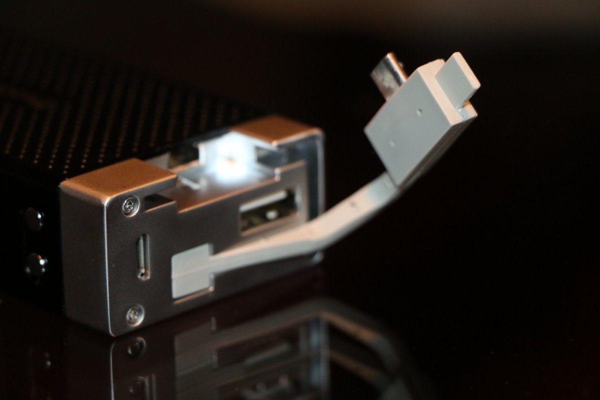 It’s a 30 watt device able to fire down to a .4 ohm load, a large capacity 3800 mAh battery is contained inside, and it can still charge your electronic devices with it’s integrated USB charge cable.