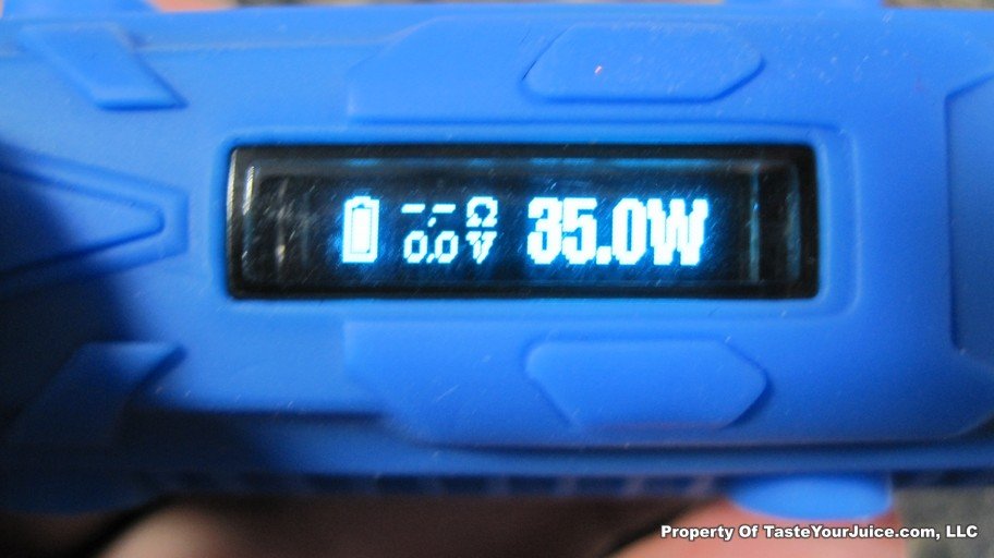 This one appears to be build like a tank. It’s a rugged 35 watt “box” style mod that fires down to a .2 ohm load. Appears to be a fixed 510 pin and no USB charging on this one, it’s an eGo style charger.