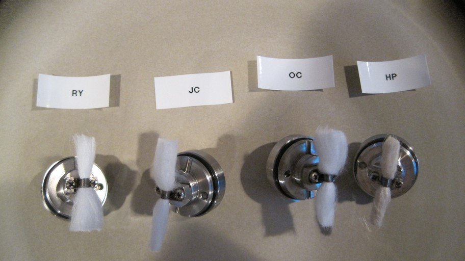 - 7/23/14 – Something not elaborated on in the video was ease of use. I thought they were all pretty easy to use when it came to wicking. The hemp bunched up at times when working it through the coil, but it wasn’t a big deal. Remember to cut the Japanese Cotton along the fibers. This will make it wick better and make it stronger for working it though your coil.